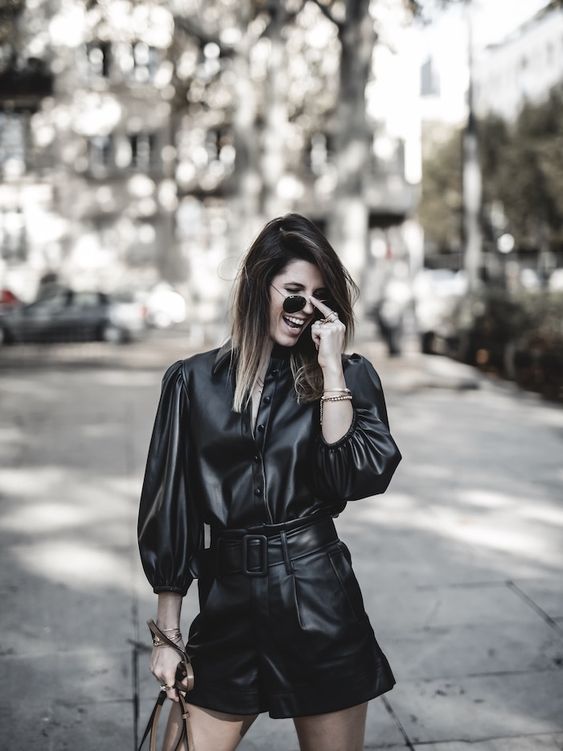 Imitation leather is the material that is coming back into fashion. In all forms, pants, skirts, dresses, tops… It is also essential to have a piece of this material in your dressing room.